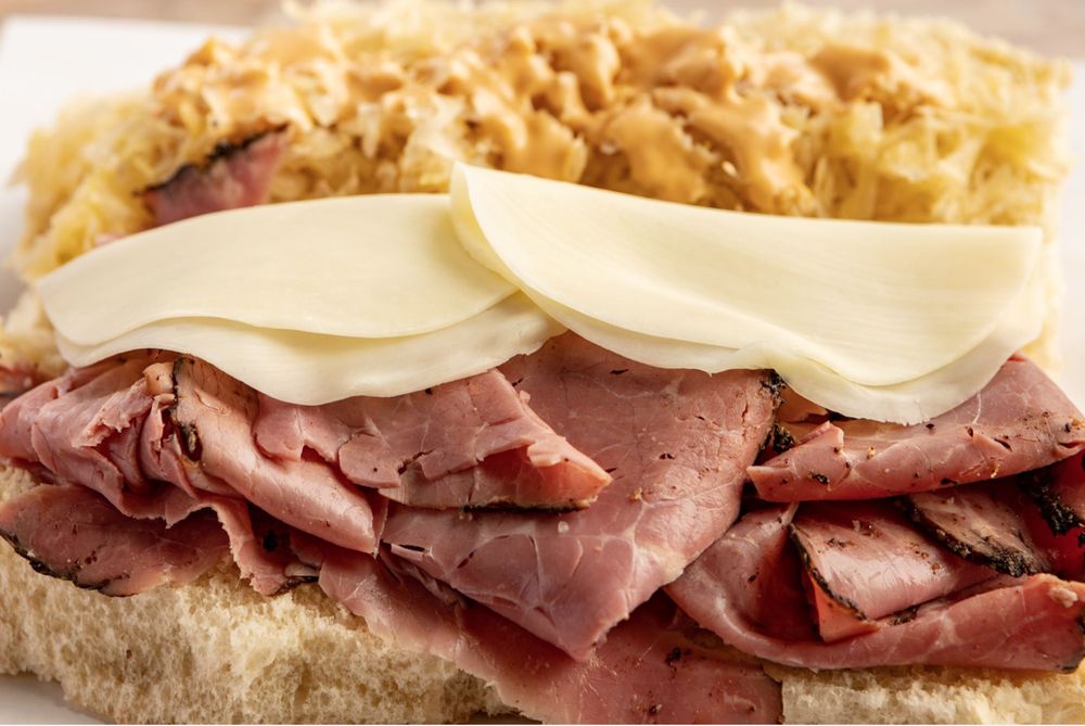 Pastrami with Thousand Island, Sauerkraut, and a lightly smoked Provolone