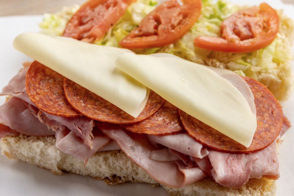 Ham and Pepperoni with Hellman's, Lettuce, Tomato, Italian Dressing, and a lightly smoked Provolone